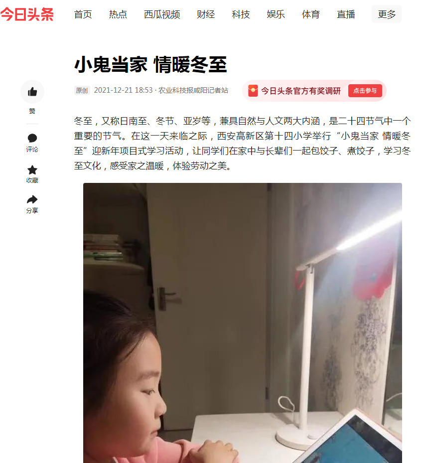 “小鬼当家,情暖冬至”,高新十四小举办此次活动,让这个冬天不再寒冷。通过活动,同学们不但感受到中国传统文化的魅力与内涵,更是锻炼了同学们的生活技能与意志品质,让每一个同学都觉得非常有意义,劳有所得,在劳动中收获成长,在劳动中收获喜悦。